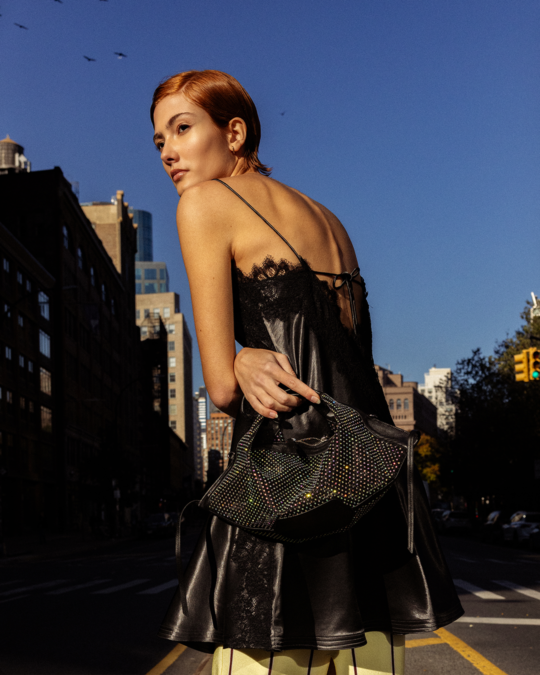 {"id":10143733645626,"title":"Crystal Luna Mini Crossbody Bag","handle":"crystal-mesh-mini-luna-crossbody","description":"\u003cp\u003e\u003cspan data-sheets-root=\"1\"\u003eThe signature Luna bag, now outfitted with an intuitive crossbody strap and adorned in shimmering crystals. Inspired by the quiet art of origami, the Luna Bag transforms mesh into a sculptural silhouette shaped by intentional folds. Both functional and poetic, it lies flat when not in use—making it the perfect travel companion and a modern wardrobe essential. With every curve and crease, Luna balances softness and structure, utility and art.\u003c\/span\u003e\u003cspan data-sheets-root=\"1\"\u003e\u003c\/span\u003e\u003c\/p\u003e\n\u003cul\u003e\n\u003cli\u003e\u003cspan data-sheets-root=\"1\"\u003e92% Polyester, 8% Spandex\u003c\/span\u003e\u003c\/li\u003e\n\u003cli\u003e\u003cspan data-sheets-root=\"1\"\u003eLining: 100% Polyester\u003c\/span\u003e\u003c\/li\u003e\n\u003cli\u003e\u003cspan data-sheets-root=\"1\"\u003eHeight: 7.1\"\u003c\/span\u003e\u003c\/li\u003e\n\u003cli\u003e\u003cspan data-sheets-root=\"1\"\u003eWidth: 15\"\u003c\/span\u003e\u003c\/li\u003e\n\u003cli\u003e\u003cspan data-sheets-root=\"1\"\u003eDepth: 7.1\"\u003c\/span\u003e\u003c\/li\u003e\n\u003cli\u003e\u003cspan data-sheets-root=\"1\"\u003eHandle Drop: 21.7\" Top Handle\u003c\/span\u003e\u003c\/li\u003e\n\u003c\/ul\u003e","published_at":"2026-02-12T11:36:14-05:00","created_at":"2026-01-13T12:47:33-05:00","vendor":"Phillip Lim","type":"HANDBAGS","tags":["8.00000","brownsp26","CHINA","clutches \u0026 mini bags","crossbody","S26","shoulder bag","spo-cs-disabled","spo-default","spo-disabled","spo-notify-me-disabled","thelunabag","tiktokshop","Women Handbags \u0026 Small Leather Goods","Womens","Womens New Arrivals"],"price":65000,"price_min":65000,"price_max":65000,"available":true,"price_varies":false,"compare_at_price":65000,"compare_at_price_min":65000,"compare_at_price_max":65000,"compare_at_price_varies":false,"variants":[{"id":52629134639418,"title":"BLACK \/ O\/S","option1":"BLACK","option2":"O\/S","option3":null,"sku":"AS26-B501-CMH-BA001","requires_shipping":true,"taxable":true,"featured_image":{"id":54970206912826,"product_id":10143733645626,"position":1,"created_at":"2026-02-06T12:47:36-05:00","updated_at":"2026-02-06T12:49:32-05:00","alt":"#color_black","width":2000,"height":3000,"src":"\/\/31philliplim.com\/cdn\/shop\/files\/AS26-B501-CMH-BA001.jpg?v=1770400172","variant_ids":[52629134639418]},"available":true,"name":"Crystal Luna Mini Crossbody Bag - BLACK \/ O\/S","public_title":"BLACK \/ O\/S","options":["BLACK","O\/S"],"price":65000,"weight":227,"compare_at_price":65000,"inventory_management":"shopify","barcode":"198287083219","featured_media":{"alt":"#color_black","id":45012454342970,"position":1,"preview_image":{"aspect_ratio":0.667,"height":3000,"width":2000,"src":"\/\/31philliplim.com\/cdn\/shop\/files\/AS26-B501-CMH-BA001.jpg?v=1770400172"}},"requires_selling_plan":false,"selling_plan_allocations":[],"quantity_rule":{"min":1,"max":null,"increment":1}}],"images":["\/\/31philliplim.com\/cdn\/shop\/files\/AS26-B501-CMH-BA001.jpg?v=1770400172","\/\/31philliplim.com\/cdn\/shop\/files\/AS26-B501-CMH-BA001_001.jpg?v=1770400313","\/\/31philliplim.com\/cdn\/shop\/files\/AS26-B501-CMH-BA001_002.jpg?v=1770400313","\/\/31philliplim.com\/cdn\/shop\/files\/AS26-B501-CMH-BA001_003.jpg?v=1770400313","\/\/31philliplim.com\/cdn\/shop\/files\/AS26-B501-CMH-BA001_004.jpg?v=1770400313","\/\/31philliplim.com\/cdn\/shop\/files\/AS26-B501-CMH-BA001_005.jpg?v=1770400294"],"featured_image":"\/\/31philliplim.com\/cdn\/shop\/files\/AS26-B501-CMH-BA001.jpg?v=1770400172","options":["Color","Size"],"media":[{"alt":"#color_black","id":45012454342970,"position":1,"preview_image":{"aspect_ratio":0.667,"height":3000,"width":2000,"src":"\/\/31philliplim.com\/cdn\/shop\/files\/AS26-B501-CMH-BA001.jpg?v=1770400172"},"aspect_ratio":0.667,"height":3000,"media_type":"image","src":"\/\/31philliplim.com\/cdn\/shop\/files\/AS26-B501-CMH-BA001.jpg?v=1770400172","width":2000},{"alt":"#color_black","id":45012454539578,"position":2,"preview_image":{"aspect_ratio":0.667,"height":3000,"width":2000,"src":"\/\/31philliplim.com\/cdn\/shop\/files\/AS26-B501-CMH-BA001_001.jpg?v=1770400313"},"aspect_ratio":0.667,"height":3000,"media_type":"image","src":"\/\/31philliplim.com\/cdn\/shop\/files\/AS26-B501-CMH-BA001_001.jpg?v=1770400313","width":2000},{"alt":"#color_black","id":45012454572346,"position":3,"preview_image":{"aspect_ratio":0.667,"height":3000,"width":2000,"src":"\/\/31philliplim.com\/cdn\/shop\/files\/AS26-B501-CMH-BA001_002.jpg?v=1770400313"},"aspect_ratio":0.667,"height":3000,"media_type":"image","src":"\/\/31philliplim.com\/cdn\/shop\/files\/AS26-B501-CMH-BA001_002.jpg?v=1770400313","width":2000},{"alt":"#color_black","id":45012454637882,"position":4,"preview_image":{"aspect_ratio":0.667,"height":3000,"width":2000,"src":"\/\/31philliplim.com\/cdn\/shop\/files\/AS26-B501-CMH-BA001_003.jpg?v=1770400313"},"aspect_ratio":0.667,"height":3000,"media_type":"image","src":"\/\/31philliplim.com\/cdn\/shop\/files\/AS26-B501-CMH-BA001_003.jpg?v=1770400313","width":2000},{"alt":"#color_black","id":45012454244666,"position":5,"preview_image":{"aspect_ratio":0.667,"height":3000,"width":2000,"src":"\/\/31philliplim.com\/cdn\/shop\/files\/AS26-B501-CMH-BA001_004.jpg?v=1770400313"},"aspect_ratio":0.667,"height":3000,"media_type":"image","src":"\/\/31philliplim.com\/cdn\/shop\/files\/AS26-B501-CMH-BA001_004.jpg?v=1770400313","width":2000},{"alt":"#color_black","id":45012458176826,"position":6,"preview_image":{"aspect_ratio":0.667,"height":3000,"width":2000,"src":"\/\/31philliplim.com\/cdn\/shop\/files\/AS26-B501-CMH-BA001_005.jpg?v=1770400294"},"aspect_ratio":0.667,"height":3000,"media_type":"image","src":"\/\/31philliplim.com\/cdn\/shop\/files\/AS26-B501-CMH-BA001_005.jpg?v=1770400294","width":2000}],"requires_selling_plan":false,"selling_plan_groups":[],"content":"\u003cp\u003e\u