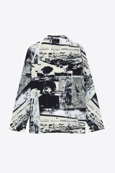 Long Sleeve Postcard Printed Shirt