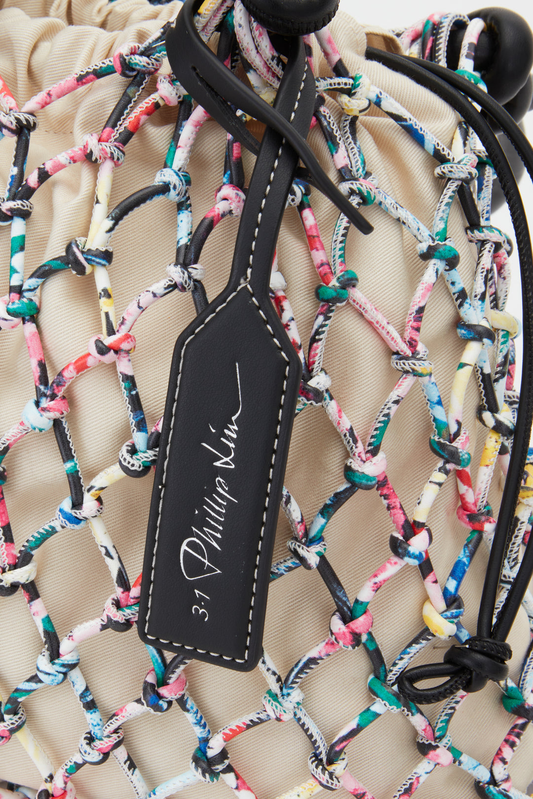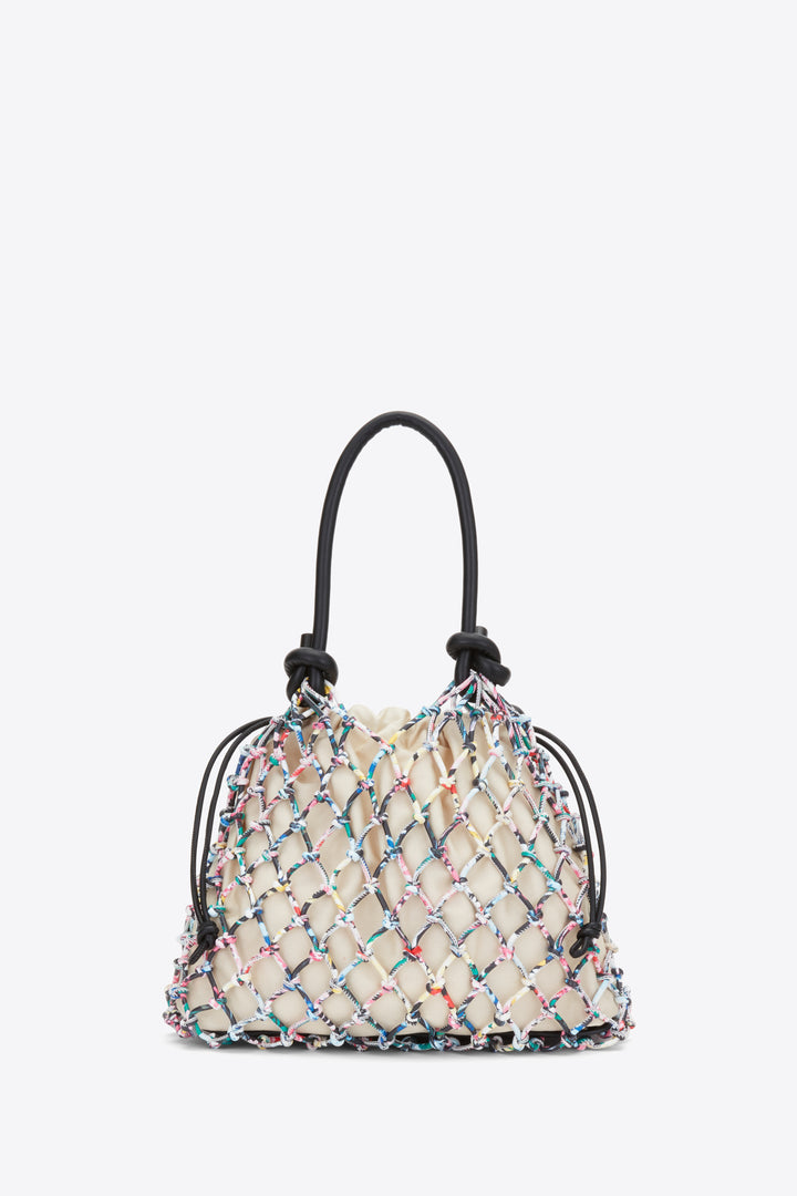 The Macrame Mini Sac features a handwoven printed faux leather macrame body with sleek faux leather handles. Inside, a removable cotton canvas drawstring pouch snaps neatly into place for secure, effortless carry. Lightweight yet structured, it’s an easy, versatile piece—perfect for bringing a playful twist to everyday dressing, from city strolls to weekend escapes.