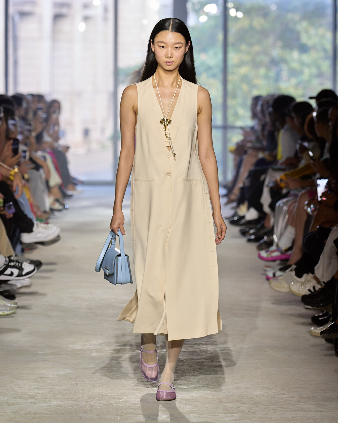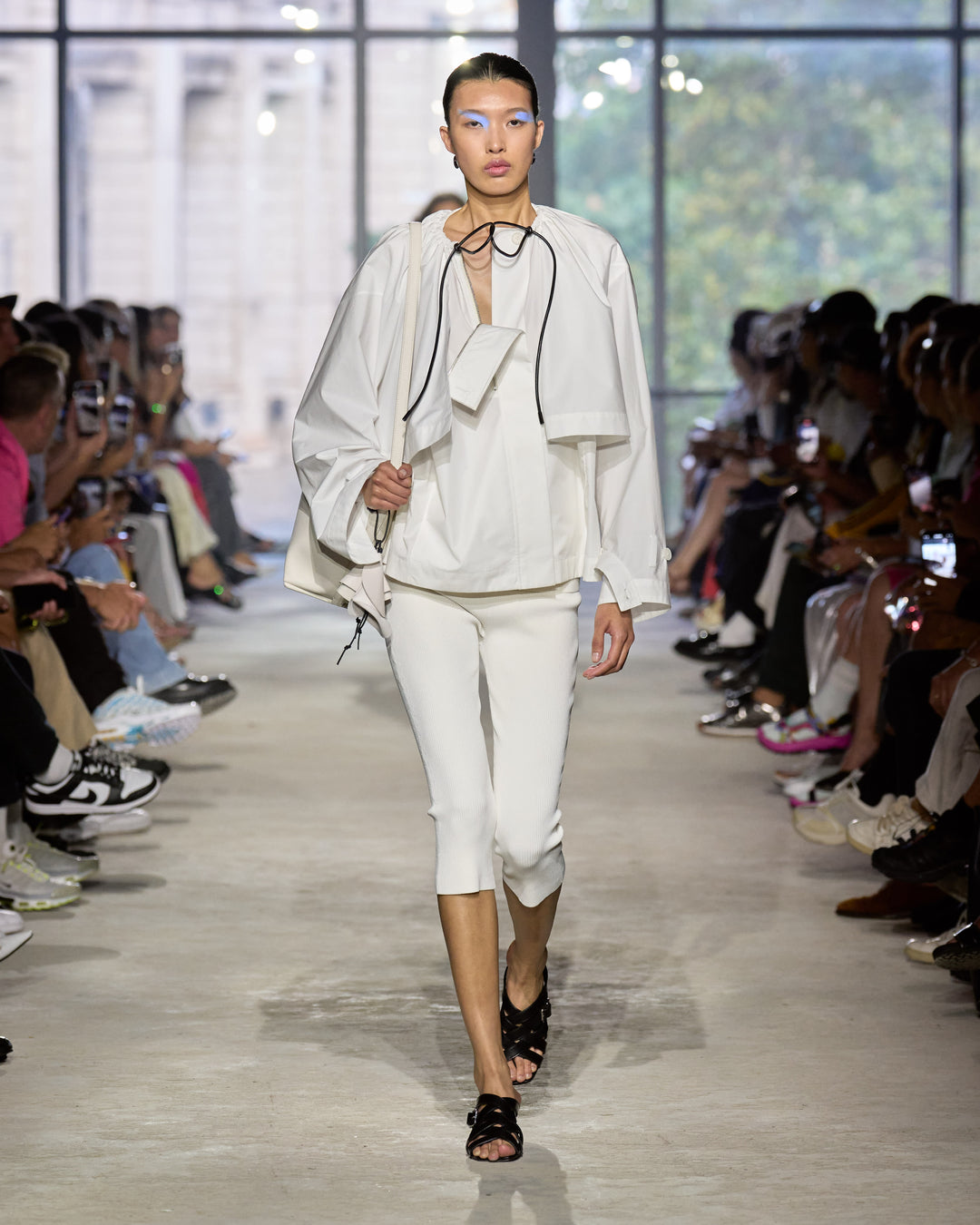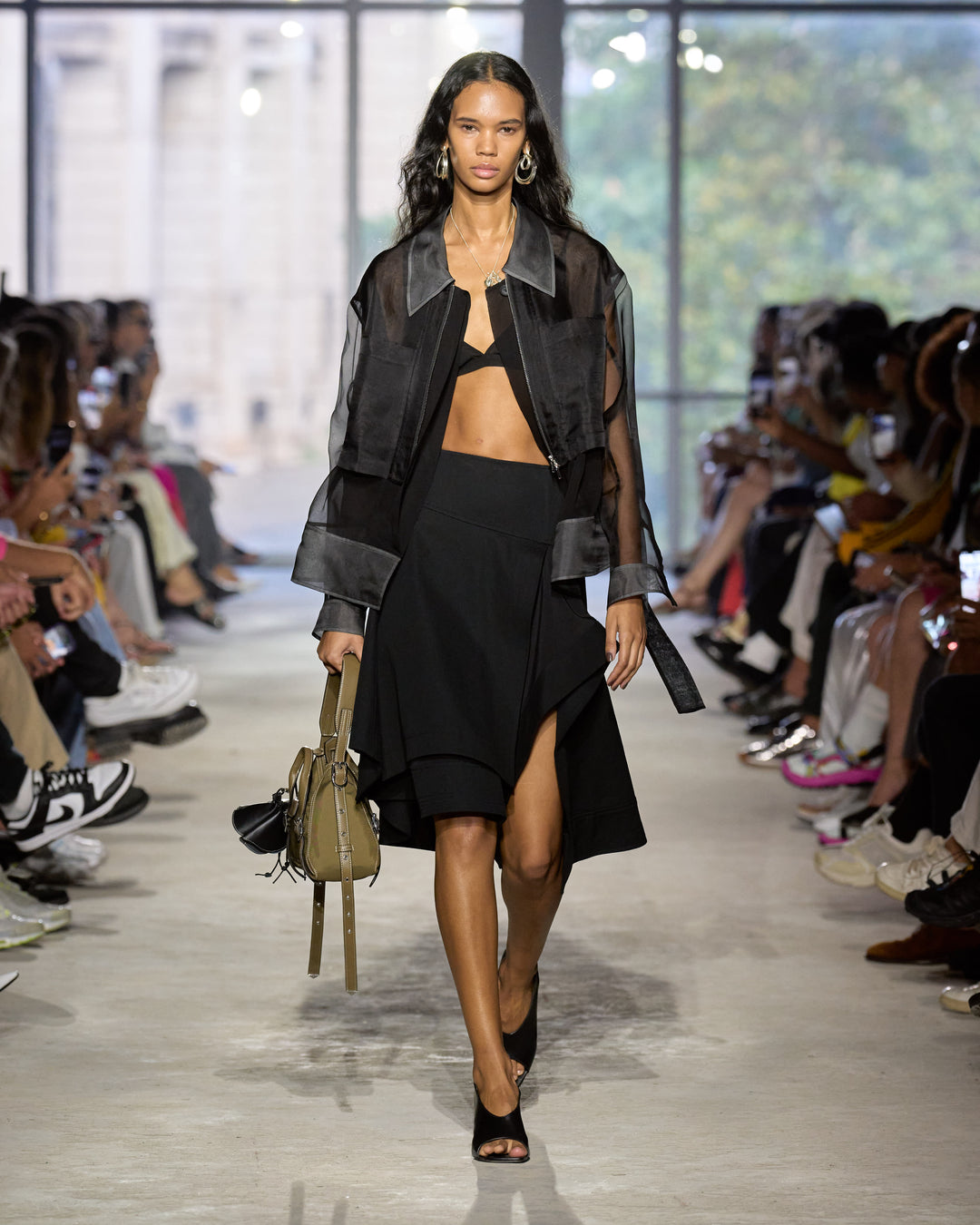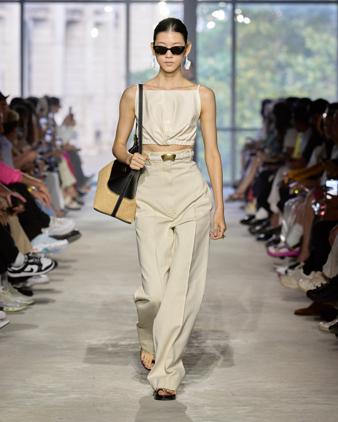 Overlooking the Manhattan Bridge and historic Bowery in Chinatown, the Spring/Summer 2024 set pulls inspiration from the city and the community we celebrate. Models entered and exited scaffolding draped in voile, stepping into light inspired by an afternoon walk in Columbus Park.