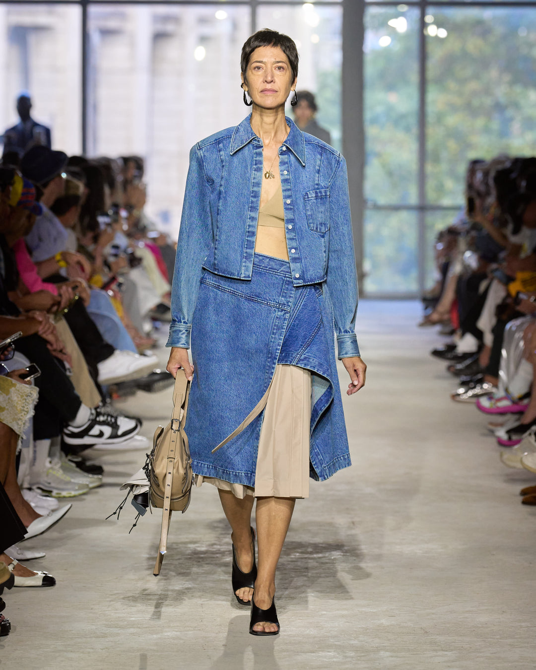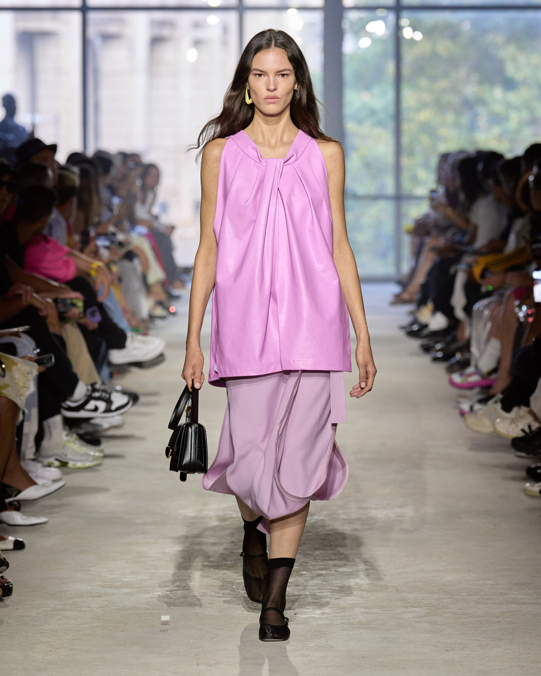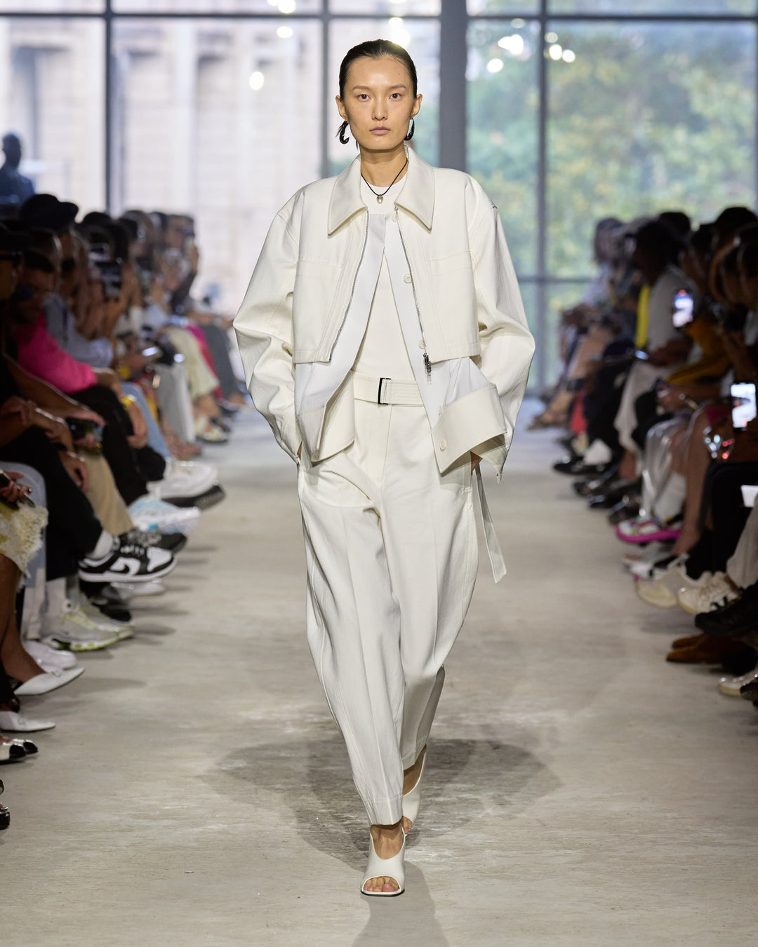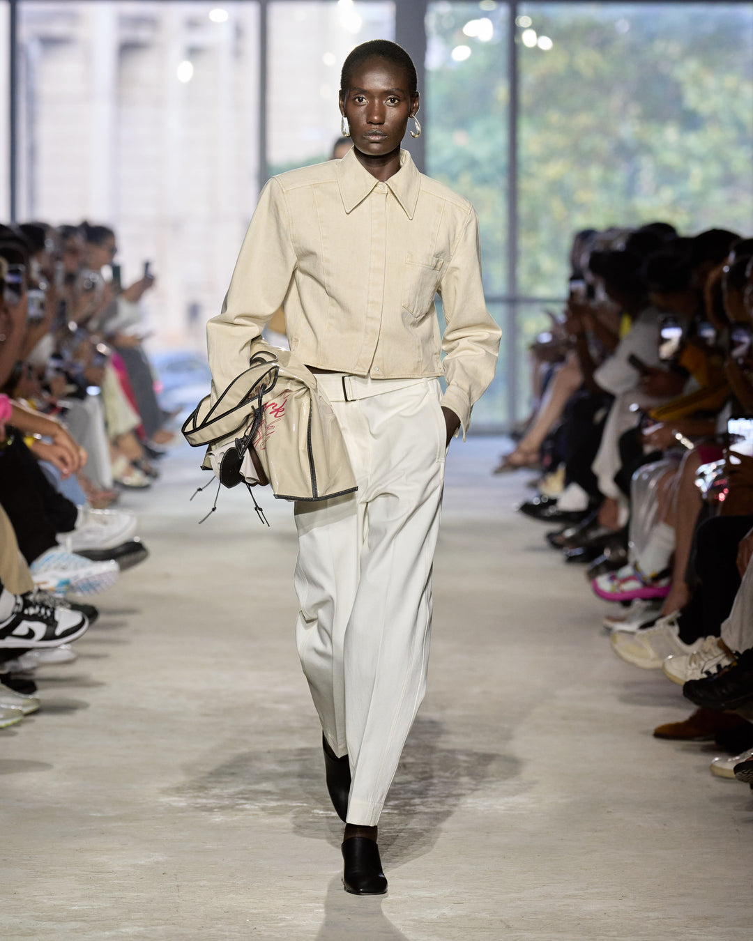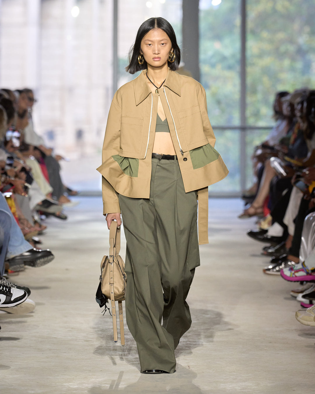 Overlooking the Manhattan Bridge and historic Bowery in Chinatown, the Spring/Summer 2024 set pulls inspiration from the city and the community we celebrate. Models entered and exited scaffolding draped in voile, stepping into light inspired by an afternoon walk in Columbus Park.