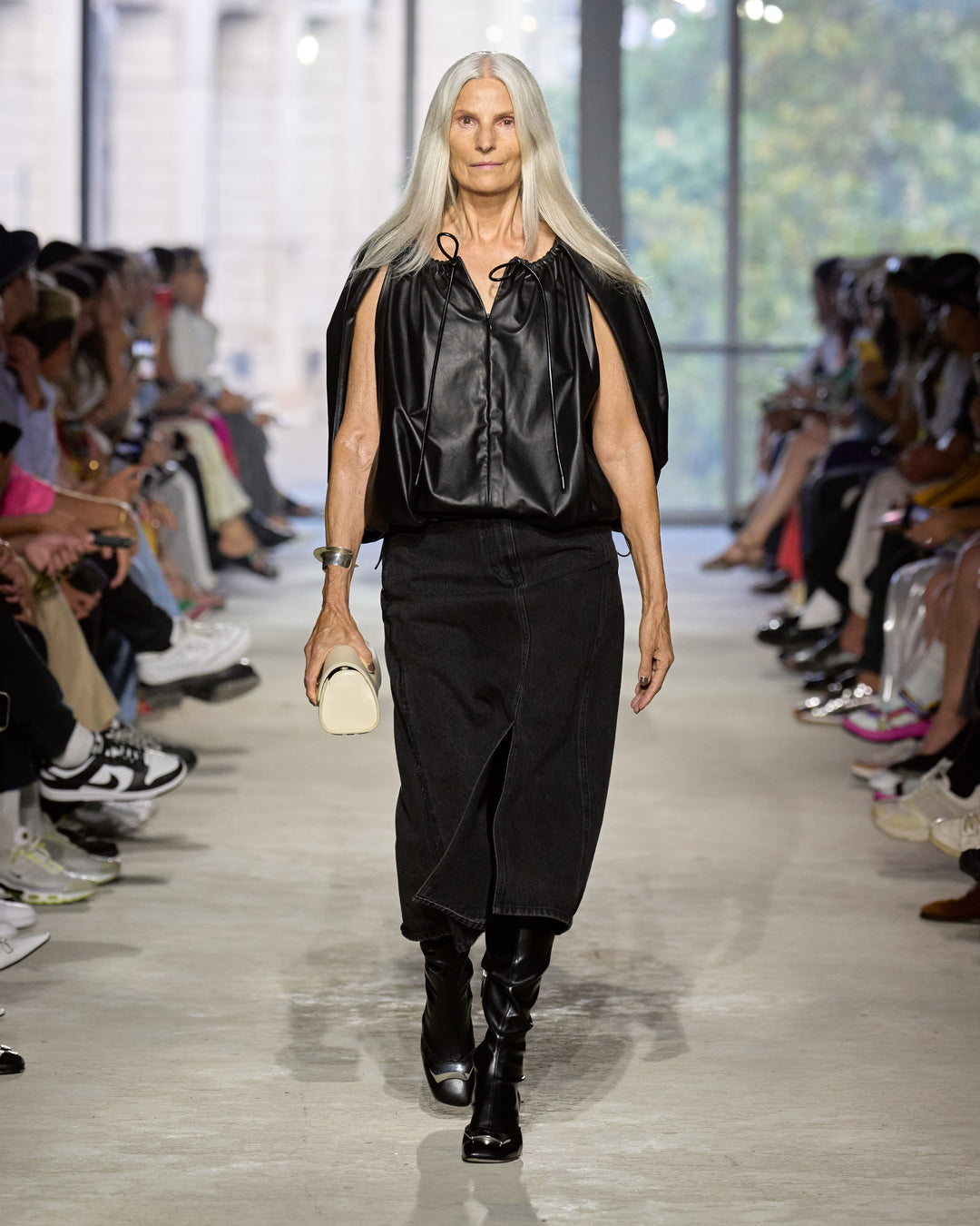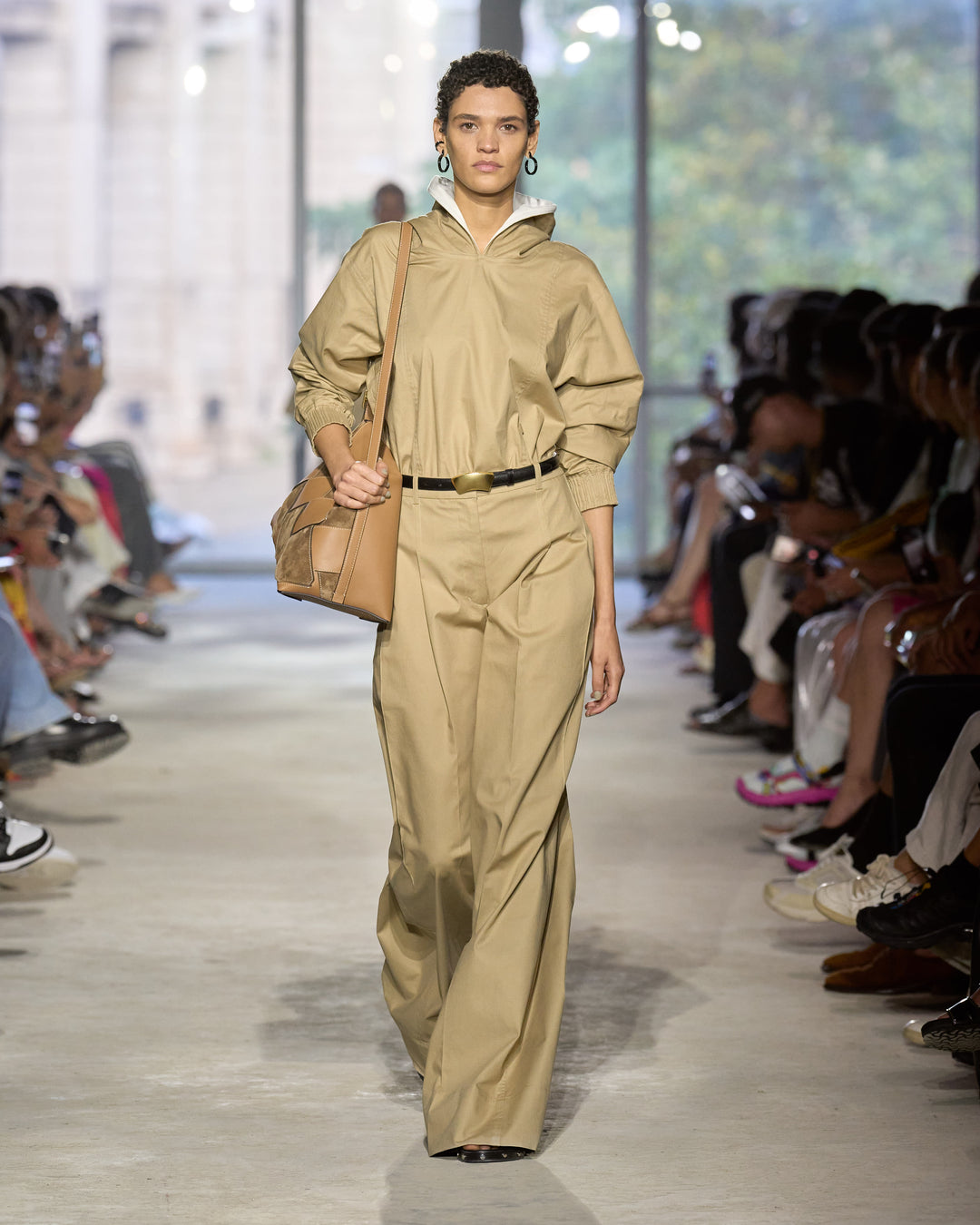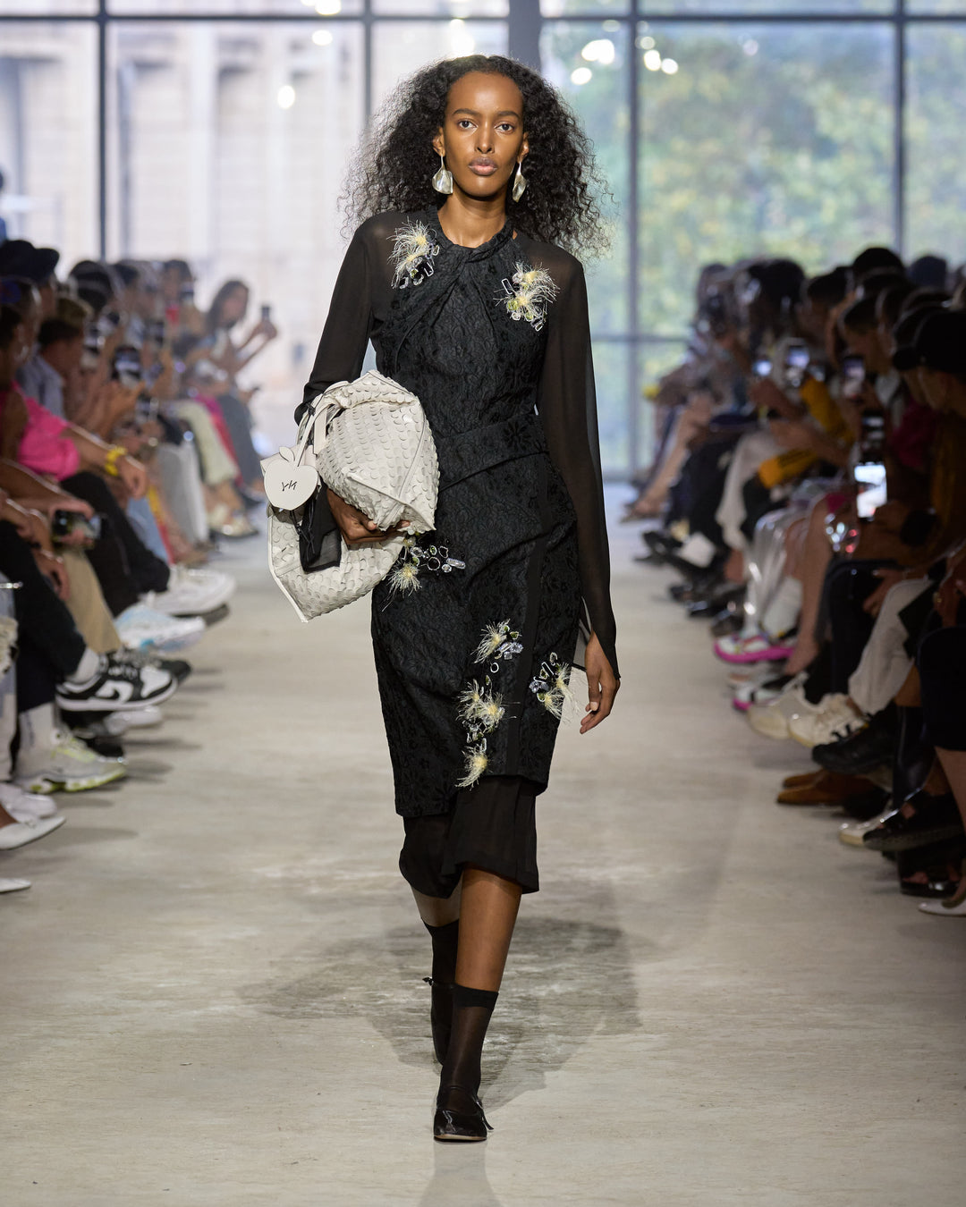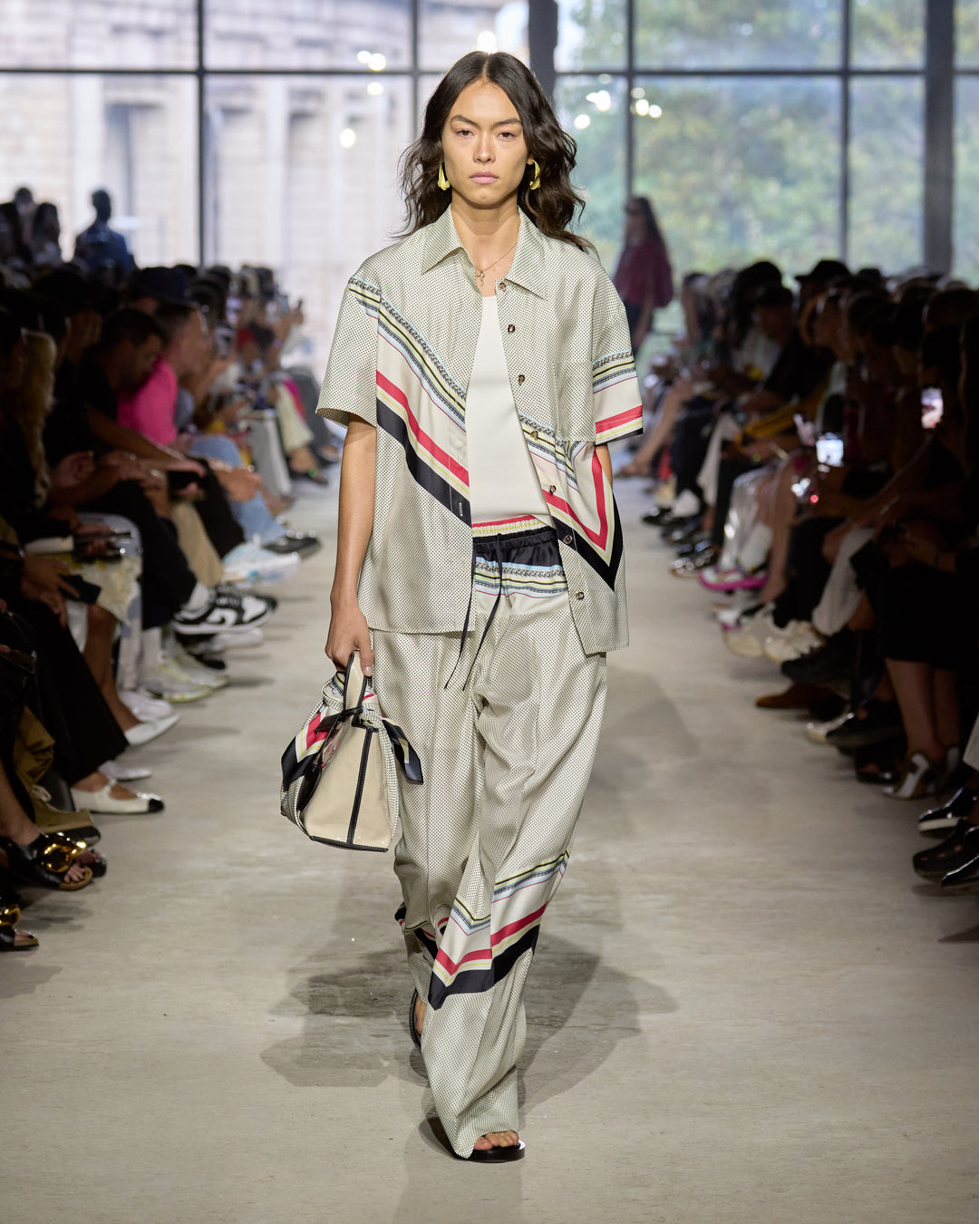 Overlooking the Manhattan Bridge and historic Bowery in Chinatown, the Spring/Summer 2024 set pulls inspiration from the city and the community we celebrate. Models entered and exited scaffolding draped in voile, stepping into light inspired by an afternoon walk in Columbus Park.