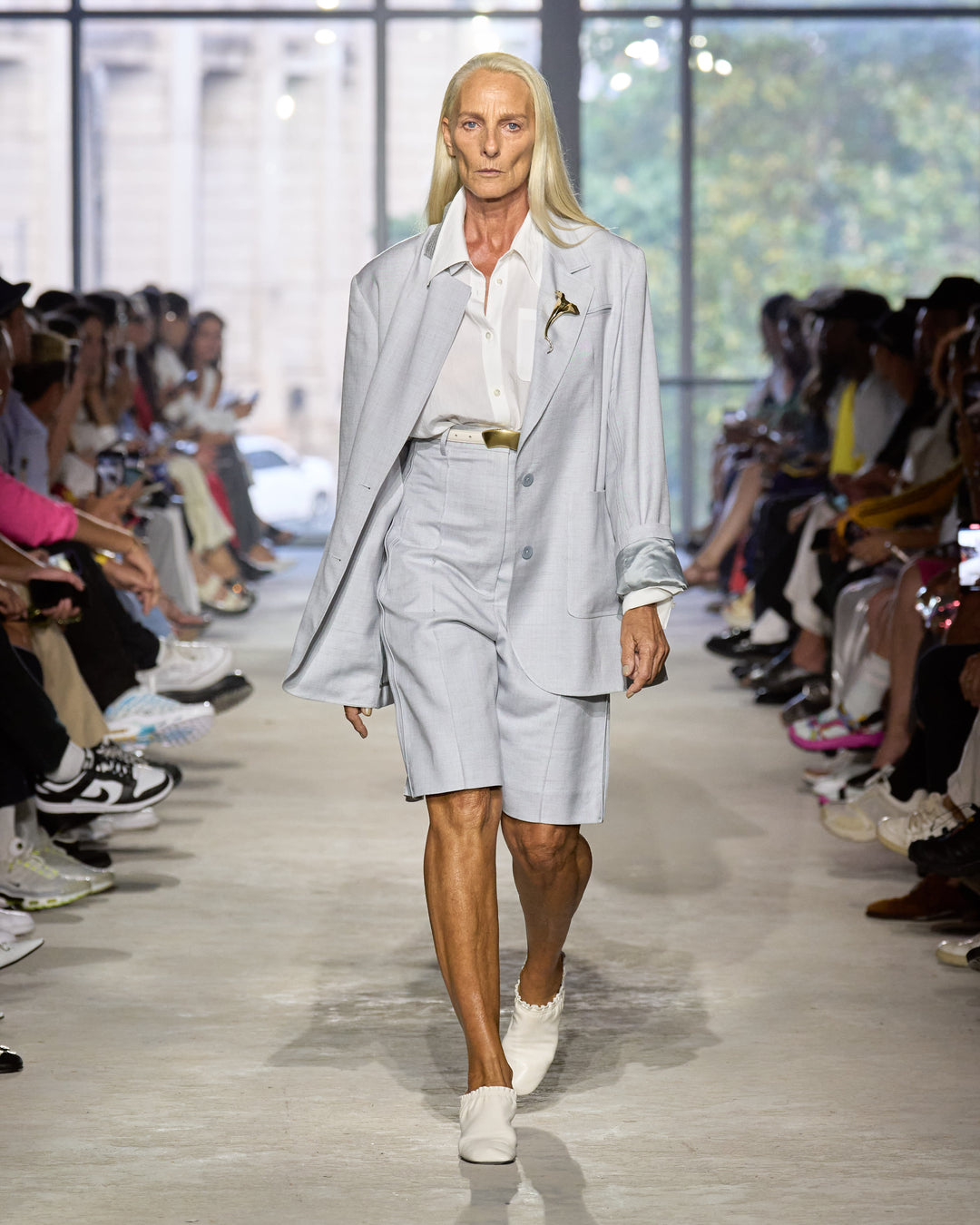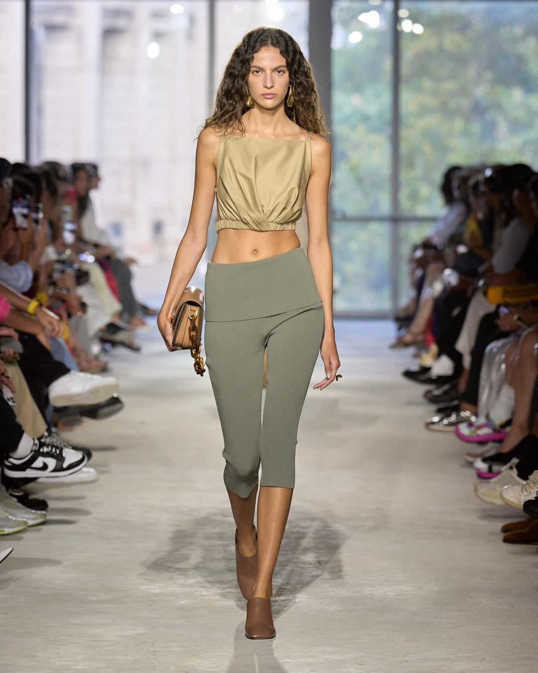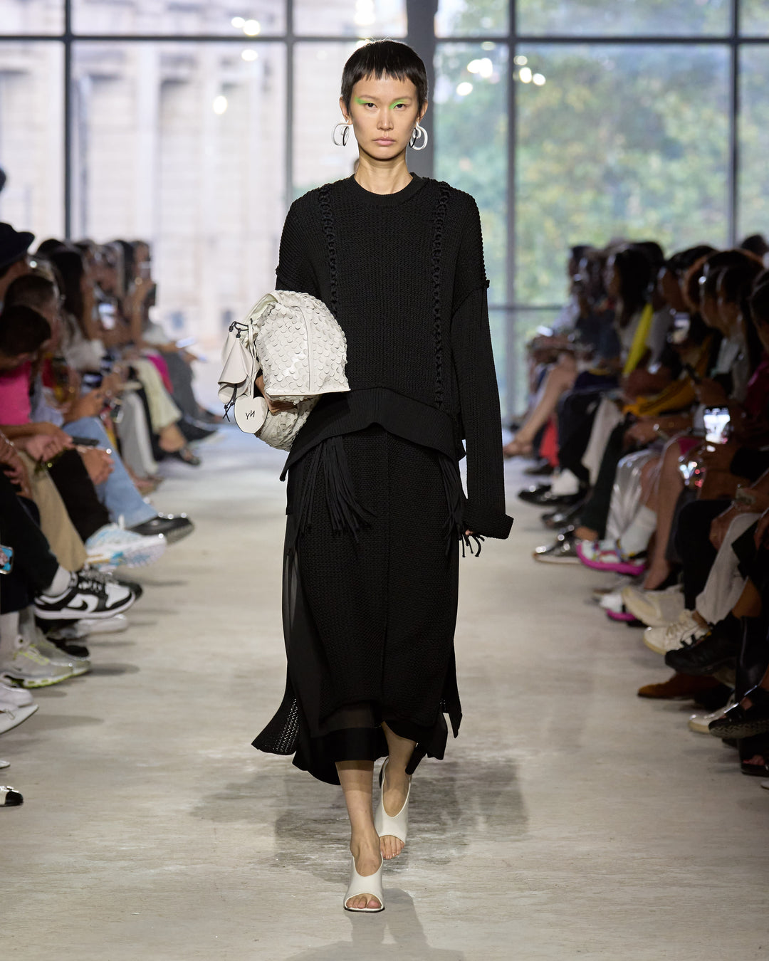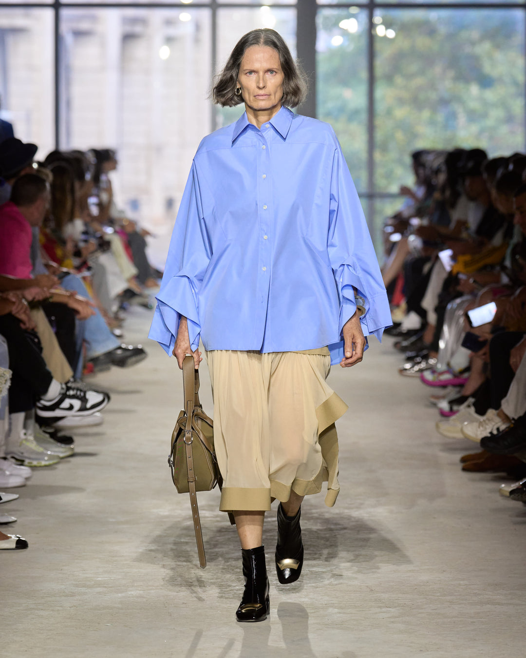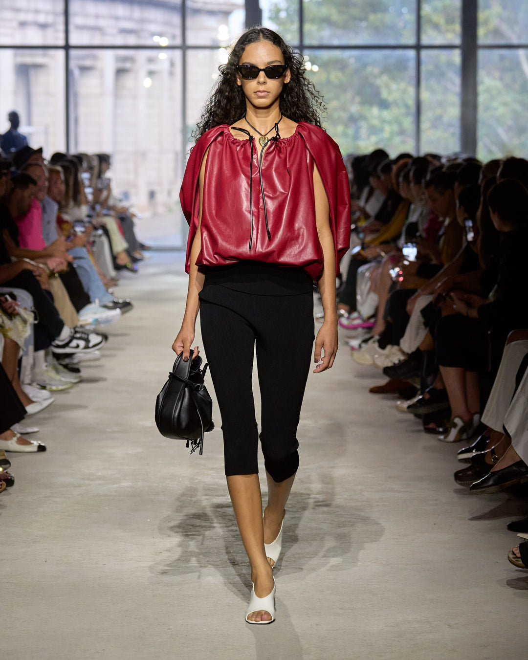 Overlooking the Manhattan Bridge and historic Bowery in Chinatown, the Spring/Summer 2024 set pulls inspiration from the city and the community we celebrate. Models entered and exited scaffolding draped in voile, stepping into light inspired by an afternoon walk in Columbus Park.