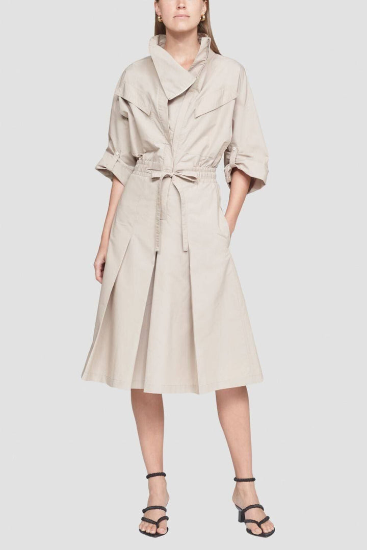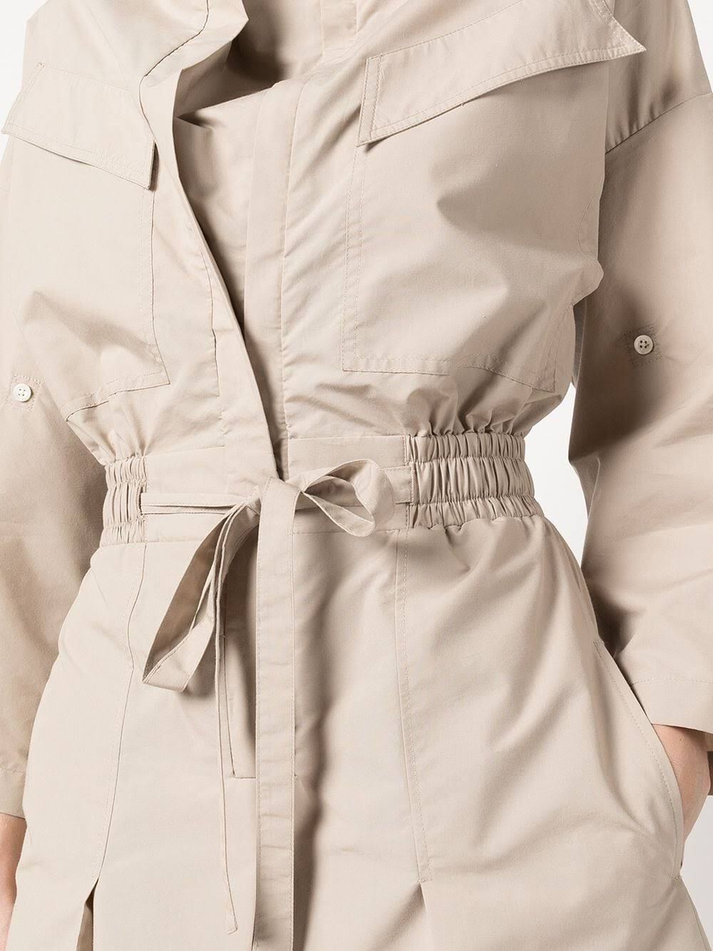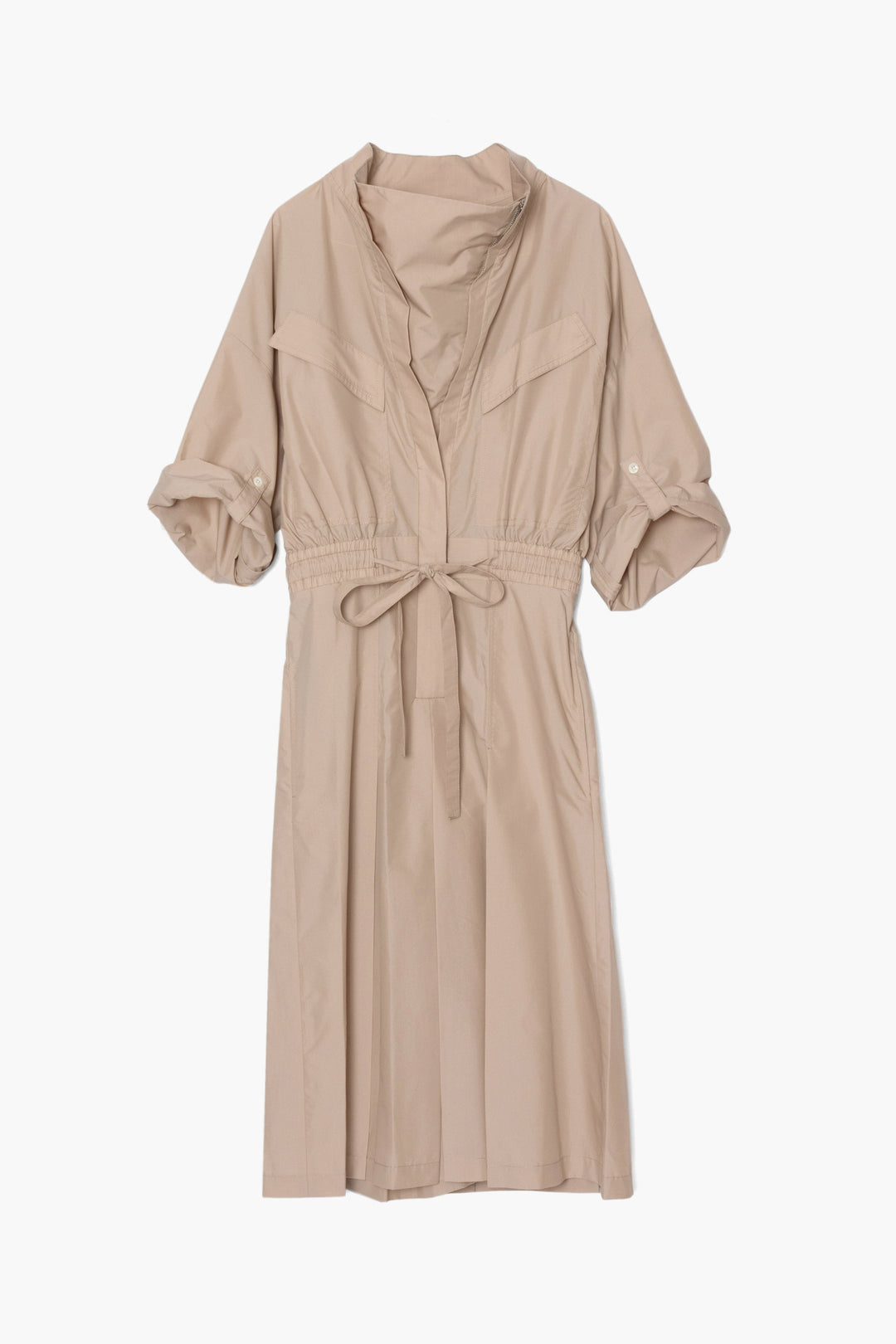 Zip-up jumpsuit in lightweight poplin with a high gusseted neckline and elasticated waist with drawstrings. Wide cropped sleeves with button adjusters. Chest flap pockets. Skirt effect pleated culottes with slip pockets. This jumpsuit is produced from a cotton and recycled polyester blend. The recycled polyester is made from collected plastic bottles and is recycled according to the Global Recycling Standard 4.0.