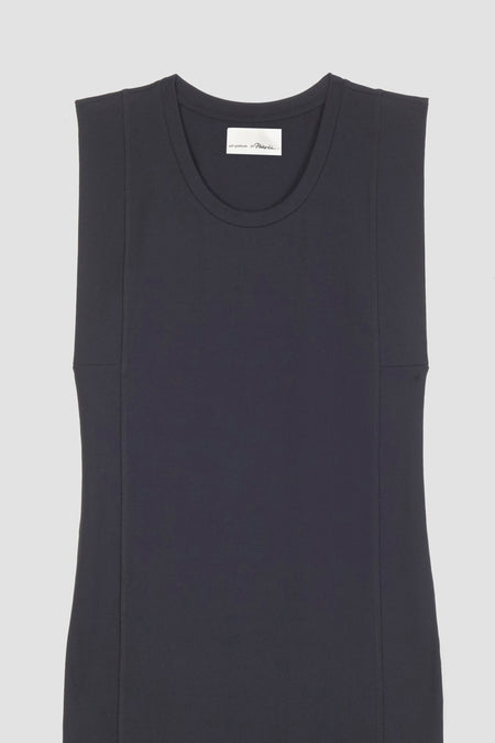 Streamlined fit, scoop neck tank dress in comfort rib. Drop shoulder sleeve and mid-calf length for effortless transitional dressing.