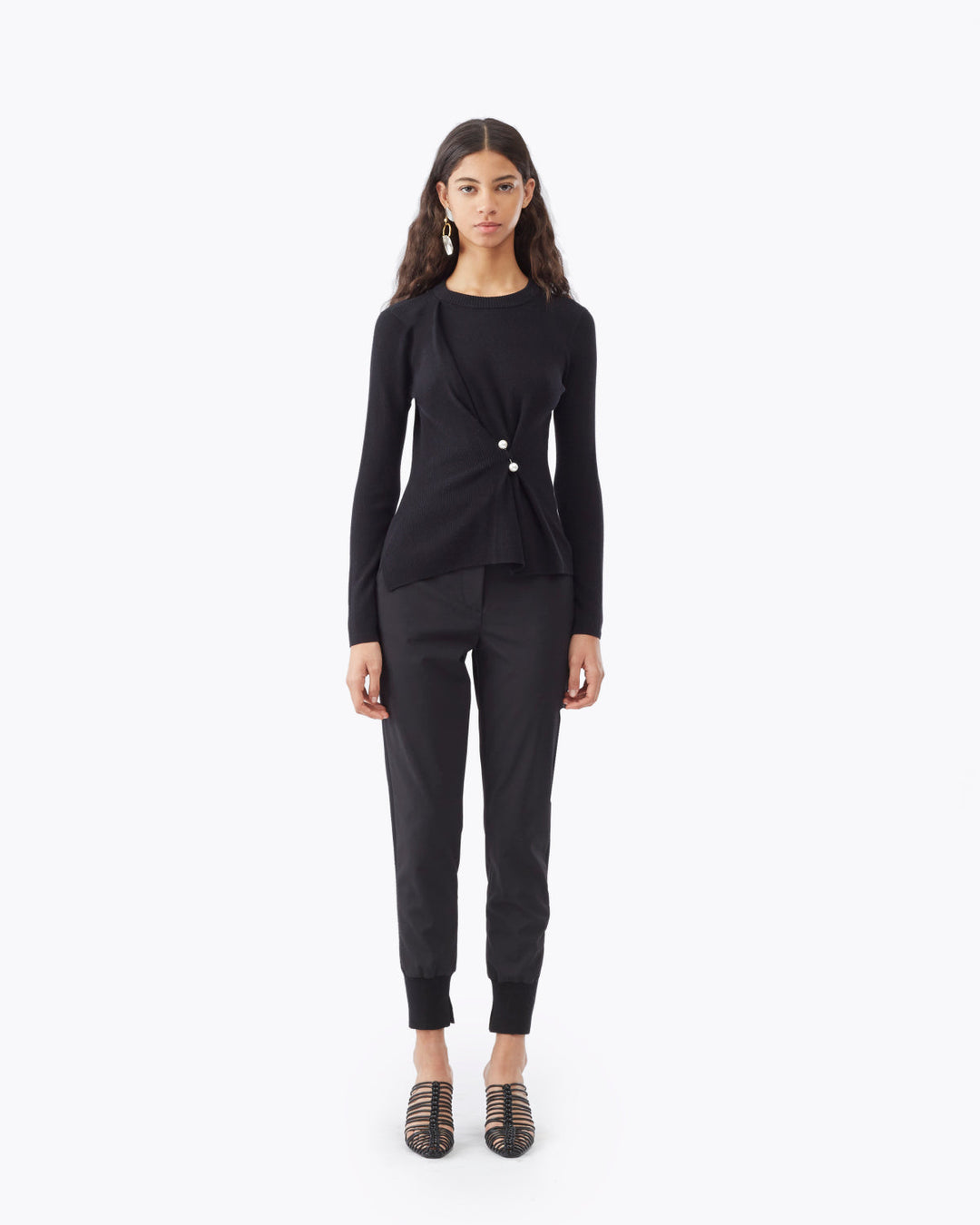 Ls Ribbed Pearl Pin Pullover