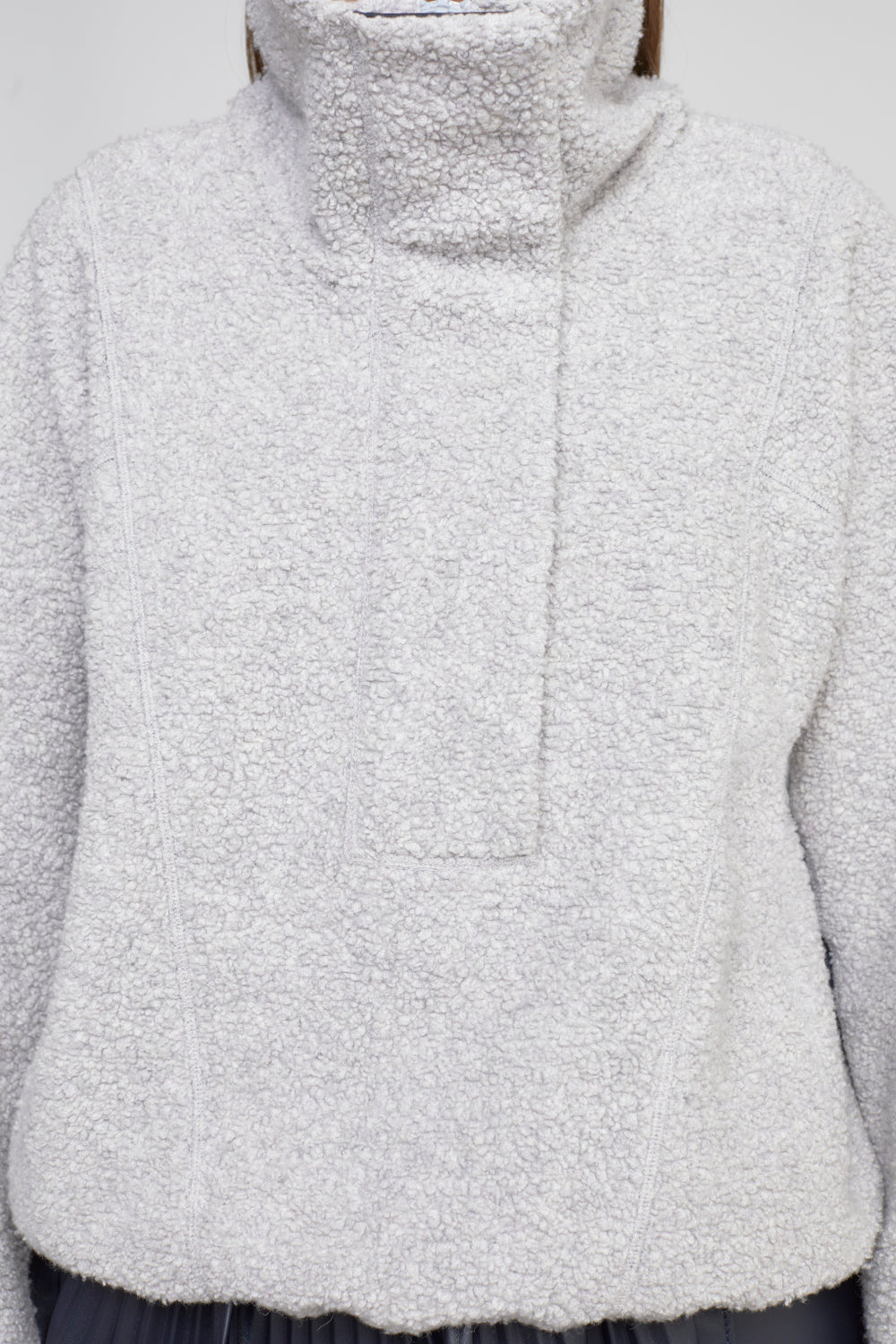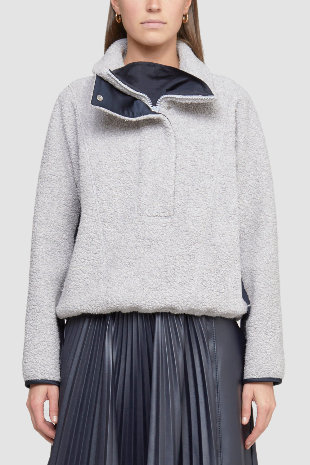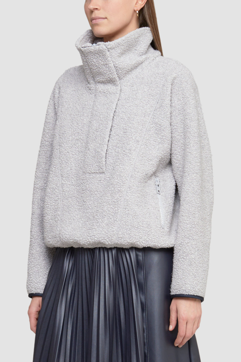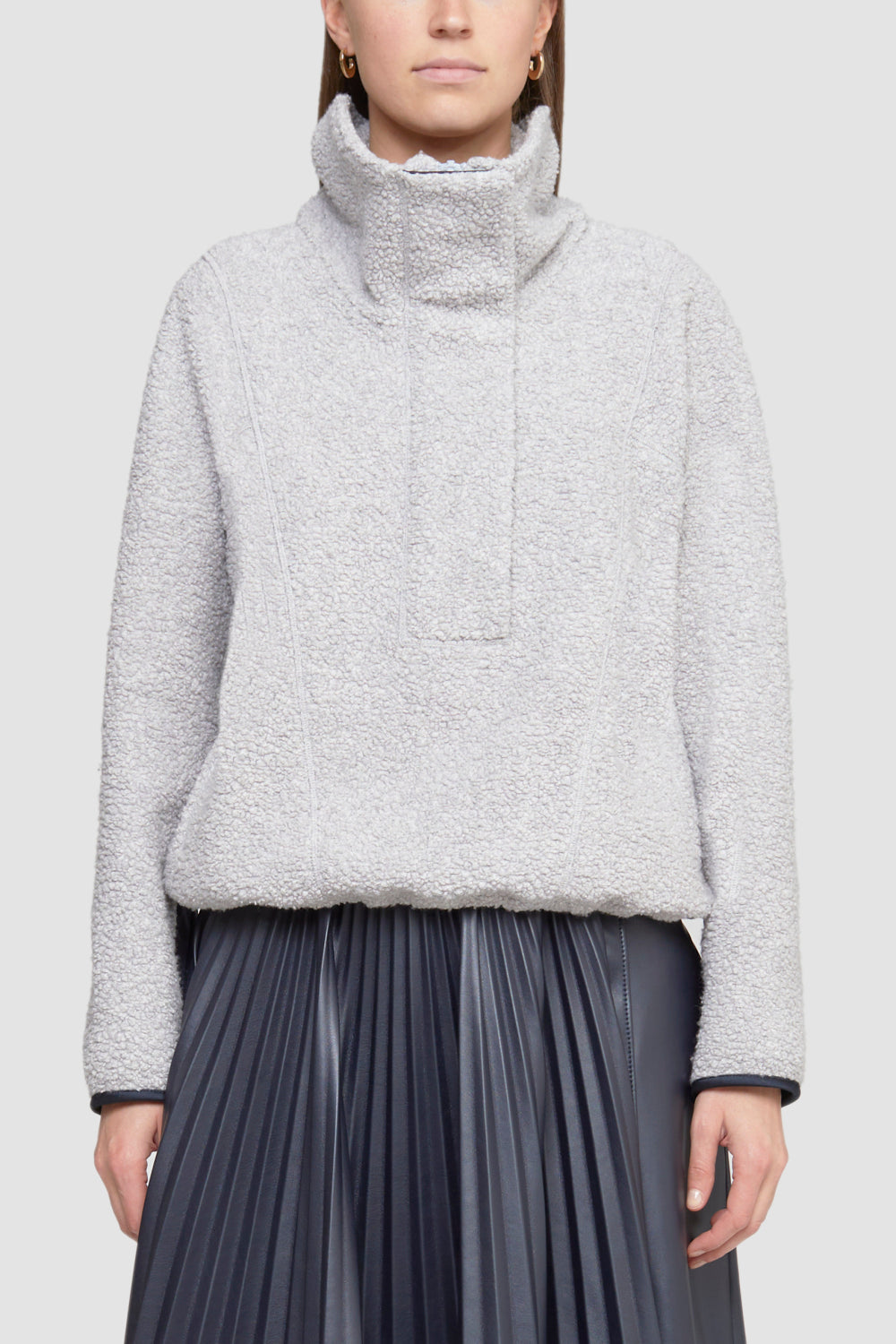 Pullover in recycled fleece with a funnel neck and long sleeves. Features a concealed half zip front closure. Flatlock seams. Front zip pockets. Drawcord and toggle adjusters at hemline. Relaxed fit.