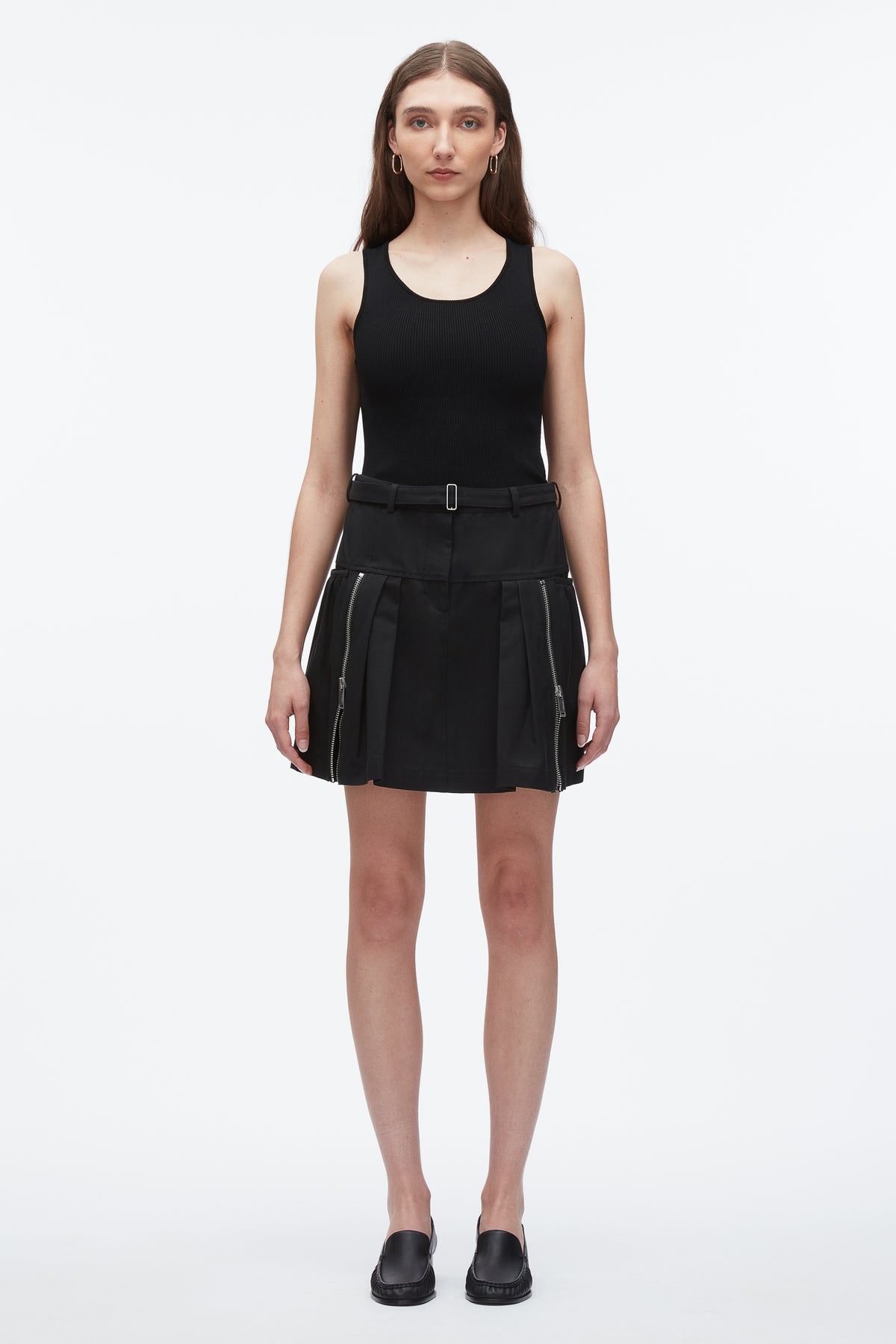 A modern take on the utility trend—with unmistakable cool. This twill mini skirt balances precision pleats with soft structure, cut from a refined cotton-viscose blend that drapes with ease. Oversized zippers and a built-in belt and side pockets that fits alll your needs, while the flared silhouette moves effortlessly with you. Style it with a crisp poplin shirt or our essential knit tank—made for city adventures, day to night.