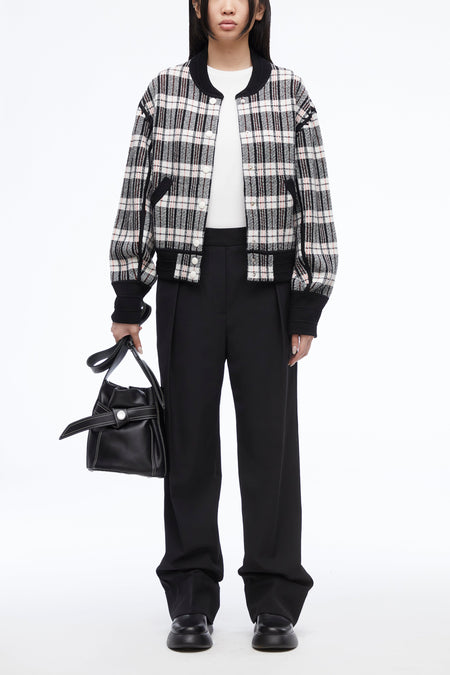 Inspired by eclectic New York communities, chunky stitches and plaid checks define this bomber jacket. It's shaped to a slightly cropped silhouette and finished with classic design details: a band collar, press-stud fastening and ribbed-knit trims.